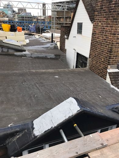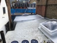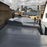 London Roofing stripped the whole roof back to the rafters and cut out all the rotten timbers and replaced with new. New Waterproof Board (WBP) ply was installed along with 130mm flat board insulation bringing it in line with part ‘L’ building regulations. This was then finished with a 20 year cold applied liquid membrane. We also installed a polycarbonate access hatch to allow maintenance to be carried out to the roof area, like the clearing of gutters/outlets of tree fallen debris. We issued the client with a 20 year single point labour and materials guarantee upon completion.