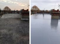 This consisted of a new self-adhesive vapour control layer, followed by a 100mm PIR flat board insulation topped with a self-adhesive carrier membrane and 15 year liquid coating system.