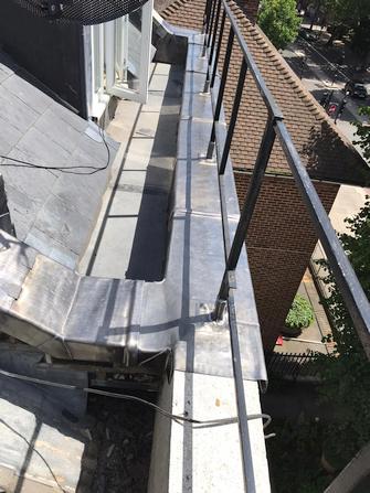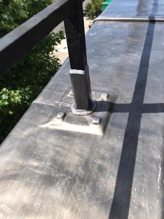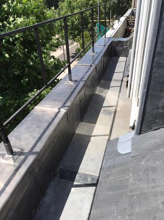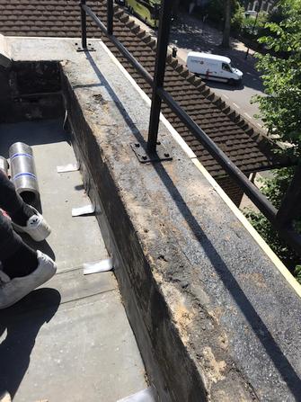The torch on felt was failing due to cracking and poor weathering detail where the railings were attached to the coping stone.