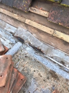 The lead had come to the end of its lifespan. It had many splits in the roll bars, which had previously had repairs carried out but they were now causing further ingress. The lead lifespan usually tends to last for a minimum of 25 years and you know it has come to the end of its lifespan when it starts ridging up and splitting.