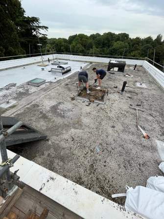 We were contacted by the Estate Manager with reports of water ingress, in a number of areas from the flat roof, into the properties below. Following an inspection, we found an asphalt roof with chippings laid over the entire roof & found that there had been a number of repairs carried out in past with a mixture of felt & resin. It had got to the point where the roof needed to be renewed.